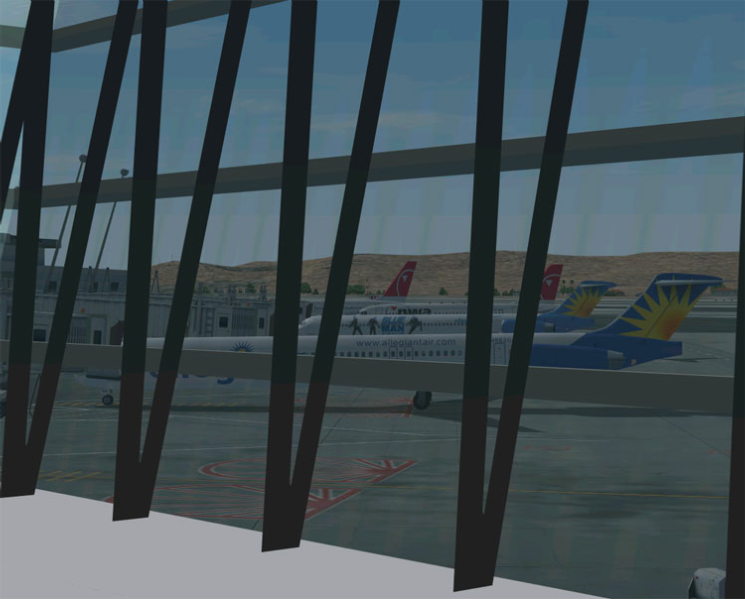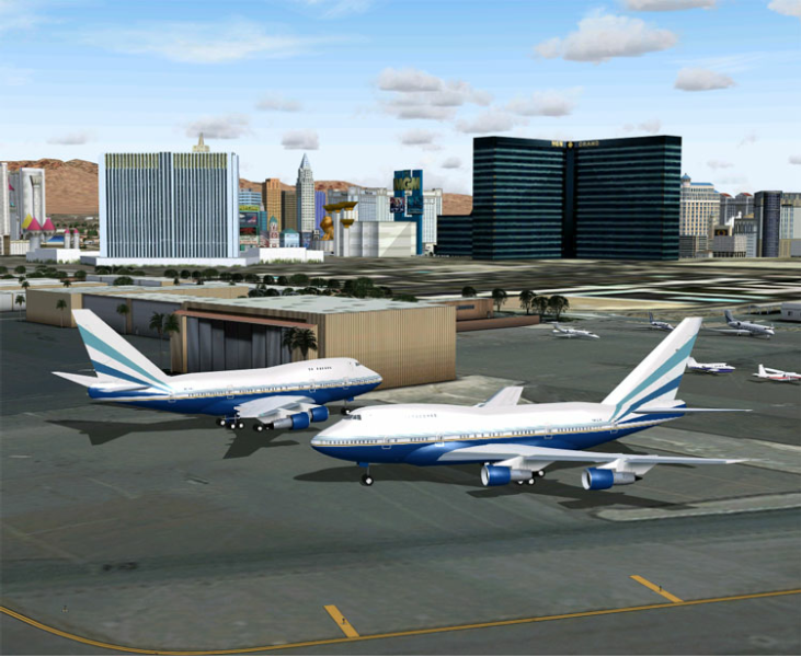 Now KLAS is a whole story in itself. This was one of my favorite airports even before I ever went there. I was using the old payware scenery that came with Just Flight’s World Airports II. A nice piece of work to be sure but quite dated. After the trip I purchase the new KLAS from FS Dreamteam. They are a little touchy over there attitude wise but they make some terrific scenery. So why am I blathering away here in the screen shots section? It’s my website so I can do what I want, but besides that, check out the images below. I think you will find it interesting.